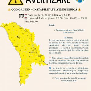 AVERTIZARE METEO COD GALBEN – INSTABILITATE ATMOSFERICĂ