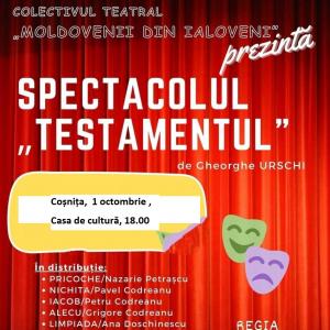 Cetățenii raionului Dubăsari sunt așteptați cu drag la spactacol gratuit! ![]() Pe data de 1 octombrie, toți doritorii și locuitorii raionului Dubăsari, sunt invitați la spactacolul ,,TESTAMENTUL” de Gheorghe Urschi. În regia Galinei Castraveț și a măiestriei colectivului teatral „Moldovenii din Ialoveni” în distribuție îi ve-ți admira pe PRICOCHE, NICHITA, IACOB, ALECU, LIMPIADA, GAFINCA, SEVASTIA și ARIADNA. Nu ezitați această ofertă unică, pe 1 octombrie, cu începere de la orele 18:00, Casa de cultură din com. Coșnița, să vizionați un spectacol mega frumos și cel mai important cu INTRARE LIBERĂ! |