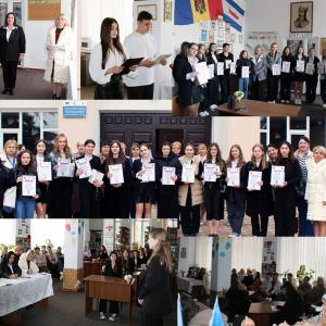 Concurs național de lectură consacrat scriitorului Vasile Romanciuc ![]() Concursul național de lectură „La izvoarele înțelepciunii”, ediția a XXXIV-a, etapa raională, s-a desfășurat la data de 26.04.2024, în incinta Bibliotecii Publice din comuna Coșnița. În scopul promovării lecturii și familiarizării cititorilor cu viața și activitatea personalităților din literatura, cultura, istoria națională și universală, de această dată, evenimentul a fost consacrat scriitorului Vasile Romanciuc, un poet din Republica Moldova, fidel genealogiei sale, care poate preface toate întâmplările în cuvinte, purtător de cuvânt al tăcerii, omul cu aripi de carte... Direcția Educație Dubăsari, în colaborare cu Secția Cultură și Turism au motivat elevii din instituțiile generale de învățământ din raion să-și adune inspirația și să demonstreze, ca de obicei, interes față de opera lui Vasile Romanciuc. Astfel, după desfășurarea concursului la nivel local, etapa raională a întrunit elevi din 12 instituții de învățământ general, cititori ai bibliotecilor școlare. Participanții au susținut 2 probe, orală și scrisă, și s-au învrednicit de aprecieri exprimate în diplome și premii. Svetlana ISAICUL, șefa Secţiei management al curriculumului şi formare profesională |