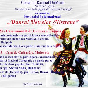În perioada 29-30 aprilie inclusiv, raionul Dubăsari va găzdui Festivalul Internațional de Dans „DANSUL VETRELOR NISTRENE”, manifestare culturală, organizată de Consiliul Raional Dubăsari  în parteneriat cu Primăria Coșnița, Universitatea Pedagogică de Stat „Ion Creangă” din Chișinău  .