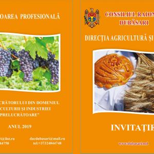 Consiliul raional Dubăsari, Direcția agricultură și cadastru are onoarea  să vă invite la ,,Ziua lucrătorului din domeniul agriculturii și industriei prelucrătoare”. Sărbătoarea raională va avea loc la Casa raională de cultură s. Coșnița, pe data de 30 noiembrie 2019, ora 10.00.