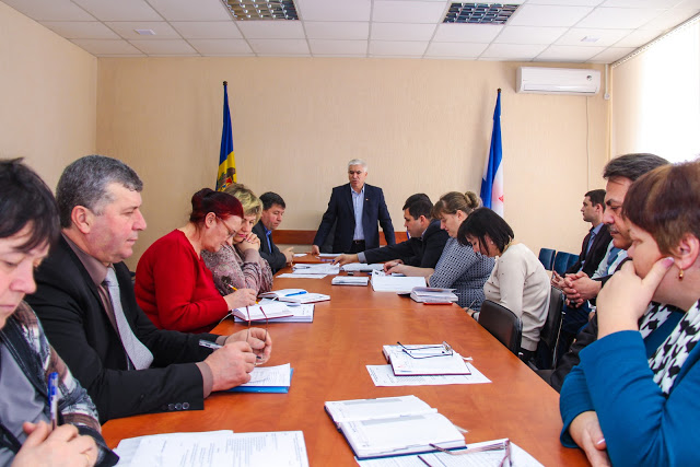 Şedinţa a fost prezidată de preşedintele raionului dl Grigore Policinsci, care a venit cu un cuvînt de salut  şi aducînd la cunoştinţă scopul şedinţei. În cadru şedinţei, de către dnl Sergiu Grigoriev a fosr adusâ la cunoştinţă conţinutul Dispoziţiei nr.14-n din 4 februarie 2016 “Cu privire la instituire grupului de lucru pentru delimitarea proprietăţii publice a unităţilor administrativ teritoriale de ambele niveluri din raion”  dnl Serghei Guvir, dna Lilia Cazac, dna Ecaterina Moiseev au adus la cunoştinţă conţinutul  cadrului legal care reglementează toată procedura dată.