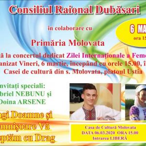 Dragi Doamne și Domnișoare!!!! ![]() Consiliul Raional Dubăsari în colaborare cu primăria Molovata, invită toate doamnele și domnișoarele din Raionul Dubăsari, la un concert dedicat Zilei Internaționale a Femeii. Astfel, toți doritorii sunt așteptați, vineri 6 martie, începând cu orele 15:00, în incinta Casei de cultură din Molovata, platoul Ustia pentru a elogia femeia împreună cu invitații speciali Gabriel NEBUNU și Doina ARSENE și colectivele artistice de la Casa de cultură Molovata. Vă așteptăm cu drag!!! Marina LUPAȘCO, redactor |