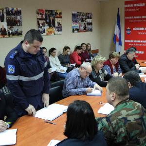 Ședința operativă cu șefii Secțiilor și Direcțiilor din cadrul Consiliului raional Dubăsari ![]() În conformitate cu planul de activitate al Consiliului raional Dubăsari, la data de 11.02.2019, a avut loc ședința operativă de totalizare a acțiunilor săptămânei precedente și planificarea activităților pentru săptămâna curentă, prezidată de către Președintele raionului dl Grigore POLICINSCHI, cu participarea colaboratorilor din cadrul Aparatului Președintelui raionului, șefii secțiilor, direcțiilor, serviciilor Consiliului raional. Astfel, conducătorii au adus la cunoștință colegilor despre cele mai importante acțiuni și au prezentat informațiile unde s-au ciocnit cu dificultăți în procesul de lucru. Șeful Secției Situații Excepționale Dubăsari, dl Vasile ZAHARIA, a informat despre incidentele neplăcute, care au avut loc la finele săptămânii trecute și intervențiile colaboratorilor din cadrul SSE. Aici, Președintele raionului, a solicitat în mod urgent de atenționat populația încă o dată cu: regulile și măsurile de prevenire a incendiilor la exploatarea mijloacelor de încălzire, regulile de comportament pe gheață și măsurile de securitate, totodată șeful SSE Dubăsari să vină cu propuneri, consolidare și ieșiri în teritoriu. Dna Maria CARA, șef adjunct IMSP CS Dubăsari, a informat despre schimbările parvenite în oferirea medicamentelor gratis sau parțial gratis cetățenilor de la 1 februarie curent. Vicepreședintele raionului, dna Maria JIMBEI a relatat despre măsurile și acțiunile planificate pentru sfârșitul săptămânii curente: Școala Tânărului Conducător, Turneul de Volei între jucătorii veterani ai sportului și marcarea a 30 de ani de la retragerea trupelor militare din Afganistan. În urma audierii informației prezentate de către conducători, printre principalele solicitări ale Președintelui au fost:
