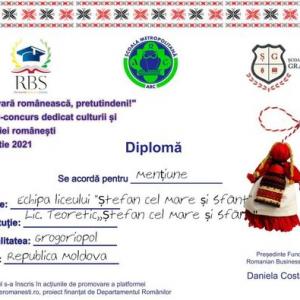 Festival-concurs dedicat culturii și civilizației românești ![]() ,,Primăvara românească, pretutindeni!''- genericul care ne-a adus cu adevărat primăvara în sufletele noastre! Am avut fericita ocazie să participăm cu un grup de elevi ai Liceului Teoretic,, Ștefan cel Mare și Sfînt'' or.Grigoriopol, în prima săptămână din luna martie, într-un festival-concurs dedicat culturii și civilizației românești! Mulțumim dnei Marina-Luiza Cristrea, care ne-a motivat să participăm la această competiție de suflet și cunoaștere a CULTURII și CUVINTELOR ROMÂNEȘTI. Mulțumim profesorilor de la Școala de gramatică - Platforma www.cuvinteromanesti.ro pentru domeniile deschise pentru cunoaștere și studiu. Evenimentul se înscrie în acțiunile de promovare a platformei www.cuvinteromanesti.ro, proiect finanțat de Departamentul Românilor de Pretutindeni. Fiecare comunitate va fi reprezentată de o echipă de trei copii cu vârsta între 7-14 ani din România, Republica Moldova și Diaspora. (Au fost invitate comunități din Paris, Madrid, Dubai, Haga, UK, SUA, Bruxelles, București, Republica Moldova). Parteneri: Fundaţia Romanian Business School (organizator), Școala Metropolitană ARC, Școala de gramatică, Asociația LER, Asociația ActHarsis. Svetlana JITARIUC, Director adjunct responsabil de procesul educativ din Liceul Teoretic "Ştefan cel Mare şi Sfânt" Grigoriopol ![]() ![]() ![]() ![]() ![]() ![]() ![]() |