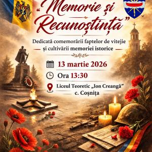 Invitație la Conferința Științifică Raională „Memorie și Recunoștință” ![]() Consiliul Raional Dubăsari, Diecția Educație are deosebita onoare de a invita reprezentanții autorităților publice locale, consilierii raionali, combatanții, fețele bisericești, conducătorii de direcții și secții, precum și toți cei interesați să participe la Conferința Științifică Raională „Memorie și Recunoștință”. Evenimentul este consacrat comemorării faptelor de vitejie, cultivării memoriei istorice și exprimării recunoștinței față de cei care au contribuit la apărarea valorilor, demnității și identității noastre naționale. Conferința va avea loc în incinta Liceul Teoretic „Ion Creangă”, c. Coșnița, pe data de 13 martie 2026, începând cu orele 13:30. Prezența Dumneavoastră va conferi evenimentului o semnificație deosebită și va consolida spiritul de unitate, respect și continuitate între generații. Vă așteptăm cu aleasă considerație! |