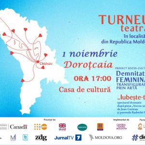 Invităm locuitorii raionului Dubăsari la teatru ![]() Hai la teatru! Invităm locuitorii raionului Dubăsari să se alăture schimbării sociale prin artă. Accesul la spectacolul care va fi realizat în s. Doroțcaia, pe data de 1 noiembrie, cu începere de la orele 17.00 va fi gratuit! Turneul teatral „Iubește-te” este organizat în 9 localități ale țării și are menirea de a comunica despre drepturile, demnitatea și puterea interioară a femeilor! Fiecare reprezentare va constitui un prilej de reflecție și dialog, publicul fiind invitat să abordeze împreună cu experții invitați rolul femeii în societatea noastră. Vino să descoperi un spectacol care inspiră și transformă comunitățile locale! Acest turneu regional este lansat în cadrul Proiectului socio-cultural „Demnitatea feminină: Transfigurarea prin Artă”, de către Centrul de Teatru din Moldova (CTM) și constituie o inițiativă socio-culturală menită să crească conștientizarea publică privind drepturile și demnitatea femeilor în Republica Moldova. Vino să descoperi un spectacol care inspiră și transformă comunitățile locale! Te așteptăm, pe data de 1 noiembrie, s. Doroțcaia să descoperi piesa de teatru „Iubește-te”, inspirată din opera „Vocea umană” de Jean Cocteau și poemele Radmilei Popovici. Spectacolul explorează conceptul de feminitate independentă și autosuficientă, punând în scenă lupta femeilor de a se elibera de stereotipurile tradiționale de gen. Regizat de Alina Țurcanu și interpretat de actrițele Tatiana Levițchii, Radmila Popovici, Sviatlana Barsukova. |