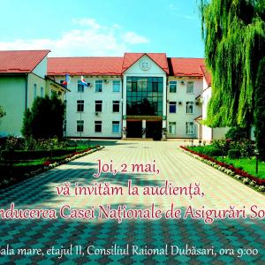 Joi, 2 mai, invităm cetățenii la audiență cu reprezentanții Casei Naționale de Asigurări Sociale ![]() În scopul consolidării relațiilor dintre autoritățile administrației publice centrale și cetățeni, precum și soluționarea operativă a problemelor cu care se confruntă societatea, joi, 2 mai, începând cu orele 9:00, cu o vizită de lucru în teritoriul raionului, se va afla conducerea Casei Naționale de Asigurări Sociale. Astfel, invităm cetățenii să dea curs acestei vizite, să participe la ședința dată unde vor avea ocazia de a fi audiați și a oferi întrebări dnei Elena ȚÎBÎRNĂ, directoare generală a Casei Naționale de Asigurări Sociale a Republicii Moldova, dnei Natalia ȘMUNDEAC, șefă Direcția Generală Dezvoltare și Management Instituțional și dnei Viorica ȚUGULSCHII, șefă Direcția Generală Pensii și Alocații. Ședința propiu-zisă și audiența cetățenilor se va desfășura în sala mare a Consiliului raional Dubăsari, etajul II, ora 9.00. |