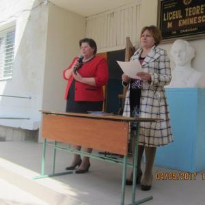 Rezultatele la olimpiada raională sunt apreciate de către Consiliul raional Dubăsari, în persoana domnului Grigore Policinschi. Colaboratorii Direcţiei învăţământ general Dubăsari s-au deplasat astăzi, 04 mai 2017, într-o vizită de lucru în Liceul Teoretic ”Mihai Eminescu”, Dubăsari şi Liceul Teoretic “Vlad Ioviţă”, Cocieri. Obiectivul deplasării a fost de a desfășura careuri festive pentru a premia elevii care au obţinut locuri premiante la olimpiada raională, în felul acesta, devenind învingătorii acestui concurs pe disciplinele de studii. Elevilor li s-au înmânat diplome de merit şi un suport financiar pentru a le motiva învăţarea şi de a obţine succese la concursul republican.