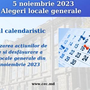 Comisia Electorală Centrală a aprobat, în cadrul ședinței din 2 august, Programul calendaristic pentru realizarea acțiunilor de organizare și desfășurare a alegerilor locale generale din data de 5 noiembrie 2023. Fiind întărit prin aprobarea de către CEC a Hotărârii nr. 1150.