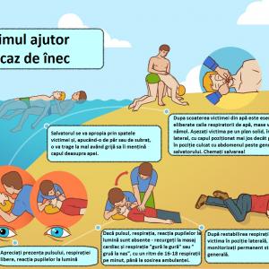 Reguli de comportare pe apă în timpul sezonului estival ![]() În timpul sezonului estival cea mai folositoare odihnă este la râu, pe malul Nistrului, unde zilnic se odihnesc în jur de peste 15 mii persoane, inclusiv: locuitori ai raionului, ai raioanelor învecinate, din mun. Chișinău. Pe parcursul ultimilor 5 ani, pe teritoriul raionului Dubăsari, au fost înregistrate 13 cazuri de înec, inlcusiv 3 copii, majoritatea cazurilor de înec survin în urma consumului excesiv de alcool, circa 80% din totalul înecurilor. Nerespectarea normelor de comportare pe apă în timpul scăldatului şi în timpul plimbărilor cu barca pe apă, agravarea în timpul scăldatului a unor boli cardiovasculare sau psiho-neurologice (infarct, ictus cerebral, acces de epilepsie) de multe ori aduc la accidente nautice. Întru evitarea producerii diferitor situații pe apă, Secția situații excepționale Dubăsari recomandă respectarea următoarelor reguli: - Înainte de sezonul estival este obligatoriu să vizitaţi medicul! - Scăldaţi-vă numai în locurile special amenajate! - Nu Vă scăldaţi în timpul furtunii! Păziţi-vă de valuri! - Evitaţi supraîncălzirea şi suprarăcirea! După ce aţi luat masa nu Vă scăldaţi 1,5-2 ore! Nu Vă scăldaţi când temperatura apei este mai joasă de 18o şi a aerului 22o. - Nu Vă scăldaţi în râuri unde sunt maluri abrubte, cu curenţi rapizi de apă, sau în obiective cu apă cu albii nămoloase, plante, pietre! - Înotând nu Vă apropiaţi de mijloace plutitoare, nu Vă urcaţi pe geamanduri şi alte mijloace de atenţionare! Reguli de comportare pe apă: - Scăldaţi-vă numai în locuri special destinate. Într-un bazin cu apă necontrolat puteţi nimeri în gropi adânci, albia poate fi nămoloasă, cu plante, pietre. Într-un râu puteţi nimeri în curenţi repezi de apă, cu vârtejuri. Toate acestea pot aduce la traume, nenorociri şi la moarte; - Controlaţi permanent comportarea copiilor lângă şi în apă. Nu uitaţi că ei trebuie să se scalde numai sub controlul părinţilor, sau altor persoane mature; - Dacă nu cunoaşteţi să înotaţi, sau înotaţi rău, nu Vă scăldaţi singur şi nu intraţi în apă mai sus de brâu; - Nu Vă scăldaţi în stare de ebrietate; - Nu Vă scăldaţi când temperatura apei este mai joasă de 180 , iar a aerului mai joasă de 220; - Înotând nu treceţi după pistele de interzicere. Nu Vă apropiaţi de mijloacele plutitoare. Nu Vă urcaţi pe geamanduri şi alte mijloace de protecţie; - Nu plongaţi de pe debarcadere, poduri şi alte construcţii, nu practicaţi jocuri cu elemente de plonjare, nu lansaţi semnale false de alarmă; - Nu folosiţi pentru scăldat saltele cu aer, anvelope din cauciuc, scânduri; - Nu Vă scăldaţi seara târziu şi noaptea. Nu Vă scăldaţi în timpul furtunii, păziţi-vă de valuri; - Nu plonjaţi în locuri necunoscute! - Nu este cunoscut ce se află la albia bazinului acvatic! - În apă evitaţi poziţia verticală! Nu Vă deplasaţi pe albia nămoloasă şi acoperită cu plante! - Nu utilizaţi pentru navigaţie mijloace confecţionate personal, care nu suportă greutatea şi se pot răsturna! - Nu înotaţi departe de la mal, îndeosebi pe saltele cu aer sau anvelope din cauciuc! - Nu Vă jucaţi în locurile posibile de prăbuşiri în apă! - Nu luptaţi cu curenţii rapizi de apă, înotaţi pe curs apropiindu-vă treptat spre mal! Reguli de comportare în barca pe apă: Principalele cerinţe pentru plimbarea cu barca sunt: starea perfectă, asigurarea cu inventar necesar (furci pentru vâsle, odgon pentru acostare, căuş, mijloace de salvare, colace, etc.). În timpul plimbărilor cu barca este interzis: - închirierea bărcilor de către minori; - supraîncărcarea bărcii; - intrarea cu barca în sectorul de scăldat al plajei; - apropierea bărcilor una de alta; - aşezarea pe bordul bărcii, trecerea în timpul navigaţiei dintr-o barcă în alta; - sărituri din barcă în apă; - aflarea în stare de ebrietate pe barcă. În cazul pericolului de înec nu trebuie să panicaţi. Păstraţi calmul, respiraţia adâncă, odihna, apoi înotaţi spre mal. În cazul necesităţii chemaţi în ajutor. Persoanele, care acordă ajutor sinistratului trebuie să ţină cont să nu cadă însuşi în primejdie. Dacă nu ştiţi să înotaţi, sau înotaţi rău nu intraţi în apă pentru salvarea sinistratului. În aşa caz aruncaţi sinistratului colacul de salvare, o saltea cu aer, anvelopă din cauciuc, o funie, o scândură, o creangă, etc. Persoanele care înoată bine, se vor apropia de sinistart, se vor scufunda şi apucându-l din spate de braţe, ori mai sigur de părul de pe cap, îl vor ridica la suprafaţa apei şi înotând se vor deplasa spre mal. Dacă persoana sinistrată este extrasă din apă la începutul înecului, primul ajutor este simplu. Deseori este deajuns să liniştim, să scoatem hainele umede, să masăm corpul, să servească ceai fierbinte pentru a scoate sinistratul din stres. Dacă sinistratul este extras din apă fără cunoştinţă, cu respiraţia şi inima oprită şi alte semne de moarte clinică este necesar de reacţionat în modul următor: - eliberarea căilor respiratoare de corpuri străine (nămol, tină, mase vomitoare); - respiraţie artificială din gură în gură, sau din gură în nas; - masajul indirect al inimii pentru reînoirea activităţii inimii şi circulaţiei sangvine. A readuce la viaţă sinistratul, care s-a înecat şi se află în stare de moarte clinică este posibil doar atunci, când din momentul scufundării definitive sub apă şi până la începutul acţiunilor de reanimare au trecut nu mai mult de 6 minute. Sunt cazuri, când sinistratul a fost readus la viaţă şi după 10-15 minute de înec. Ca regulă, rezultate pozitive pot fi obţinute doar atunci, când acţiunile de reanimare au fost începute în primele 2-3minute. Acordarea primului ajutor sinistraților pe apă