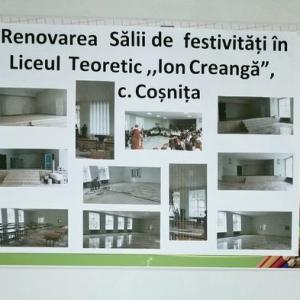Renovarea sălii de festivități din Liceul Teoretic ,,Ion Creangă” Coşniţa