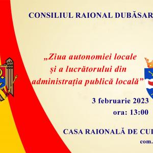 Să celebrăm împreună Ziua autonomiei locale și a lucrătorului din administrația publică locală ![]() În Republica Moldova anual, la 1 februarie, este consemnată Ziua autonomiei locale și a lucrătorului din administrația publică locală. Cu acest prilej, Consiliul raional Dubăsari, invită primarii, angajații primăriilor, consilierii locali și raionali, angajații serviciilor desconcentrate și descentralizate, cetățenii, vineri, 3 februarie, la orele 13:00, la Casa raională de cultură din comuna Coșnița, pentru a celebra această zi specială. Acest eveniment ne va oferi oportunitatea de a ne exprima înalta apreciere a activității Dumneavoastră pe tărâmul profesional în soluționarea problemelor cetățenilor şi dezvoltarea social-economică a comunităților și satelor din Raionul Dubăsari! |