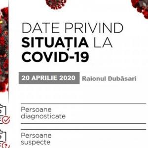 Situația privind monitorizarea răspândirii virusului COVID-19 în raionul Dubăsari, la data de 20 aprilie 2020, orele 12.00-12.30. ![]() Situația privind monitorizarea răspândirii COVID-19 în raionul Dubăsari, la data de 20 aprilie 2020, orele 12.00-12.30.