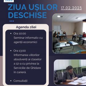 Subdiviziunea teritorială de ocupare a forţei de muncă Dubăsari invită toți doritorii la ziua ușilor deschise ![]() În contextul marcării a 32 ani de la crearea Serviciului public de ocupare din Republica Moldova, Subdiviziunea teritorială de ocupare a forţei de muncă Dubăsari INVITĂ cetăţenii raionului Dubăsari şi agenţii economici, pe data de 17 februarie 2023, de a ne vizita la sediul subdiviziunii, s. Cocieri, str. Țărmului nr.2. Vizitatorii vor fi informaţi privind serviciile oferite de subdiviziune, suportul de care beneficiază persoanele aflate în căutarea unui loc de muncă cât și posibilitatea persoanelor fizice și juridice de a accesa surse financiare din partea statului prin intermediul subdiviziunilor teritoriale de ocupare a forței de muncă la inițierea unei afaceri sau dezvoltarea afacerii existente. Pentru informații suplimentare apelați telefonic la 0248-93-360 sau la sediul subdiviziunii s. Cocieri, str. Țărmului nr.2. Vă aşteptăm cu drag!!! |
